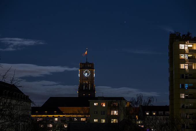 Am 2.Okt 2020 zog der Vollmond hinter dem Rathaus Schöneberg, in Höhe der Freiheitsglocke vorbei.